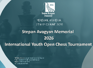 The Chess Academy of Armenia is organizing the XX International Open Youth Chess Tournament dedicated to the memory of Stepan Avagyan. The tournament will take place from May 27 to June 3, 2026, at the Chess Academy of Armenia (Yerevan, Shevchenko 34).